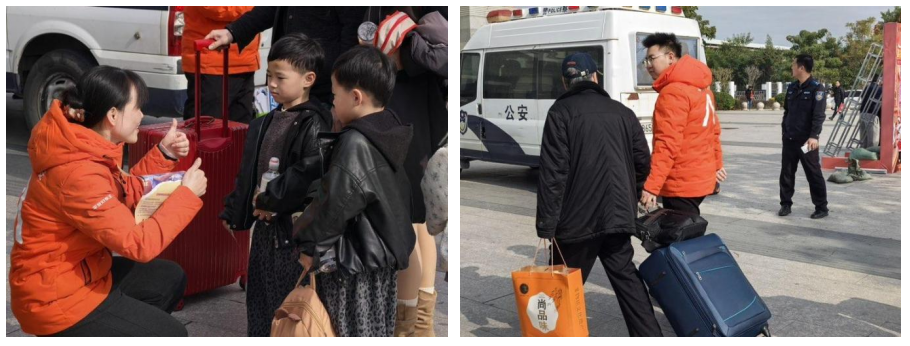 春运首日的晋江动车站客流攀升,拎着行囊的旅客步履匆匆,归家的喜悦与期盼洋溢在眉眼之间。车站广场上,平安产险标志性的平安橙与交警执勤的荧光绿相映成景,工作人员与执勤民警分工协作、贴心服务,成为春运路上一道温暖又安心的风景线。