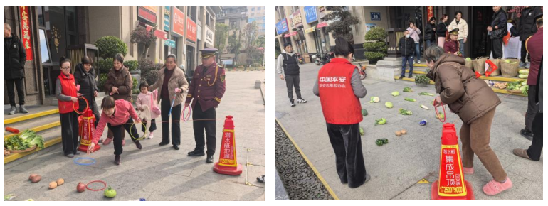 在“蔬香套趣”互动区域,居民们有序参与套圈游戏。每当有人套中蔬菜,现场便响起阵阵欢笑声与喝彩。“套中了!今晚加菜!”居民陈阿姨举着刚赢得的西兰花,乐得合不拢嘴,“这活动有意思,有得玩还有得拿,心里暖乎乎的!”志愿者们穿梭其间,协助分发蔬菜、维持秩序,让趣味游戏更添一份温情。