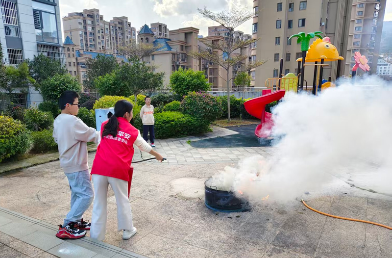 随后的消防演练更将理论落地,孩子们在平安产险志愿者指导下操作灭火器、模拟火场逃生,于实践中掌握自救技能。“原来灭火器要‘提拔握压’,撤离时要弯腰捂鼻!”一位学生兴奋分享收获。