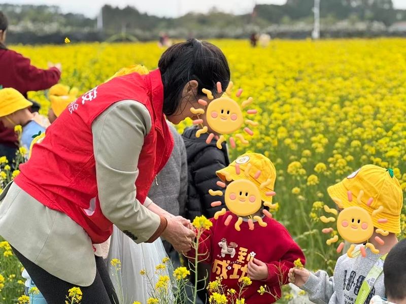 在漳州漳浦县,平安产险漳州中心支公司联合红杉木幼儿园开展“认养油菜花”研学活动。孩子们在志愿者讲解下观察油菜花生长周期,并通过认养牌仪式建立责任意识。