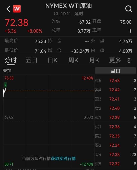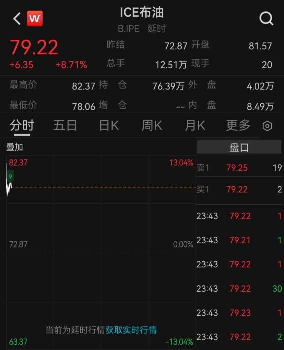 受伊朗局势影响,全球原油市场陷入动荡。北京时间3月2日,国际油价大幅高开,布伦特原油价格一度上涨13%,突破每桶82美元,创下2025年1月以来的最高水平;WTI原油一度上涨超12%。
