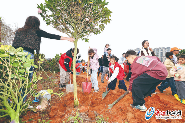 昨日,晋江市深沪镇科任水库公园内人声鼎沸,超3000名市民、游客齐聚一堂,共同开启晋江市第三届深沪湾亲子植树活动的绿色旅程。这片藏在海湾里的生态公园,化身充满欢声笑语的“绿野仙踪”,植树护绿与春日野趣完美交融。