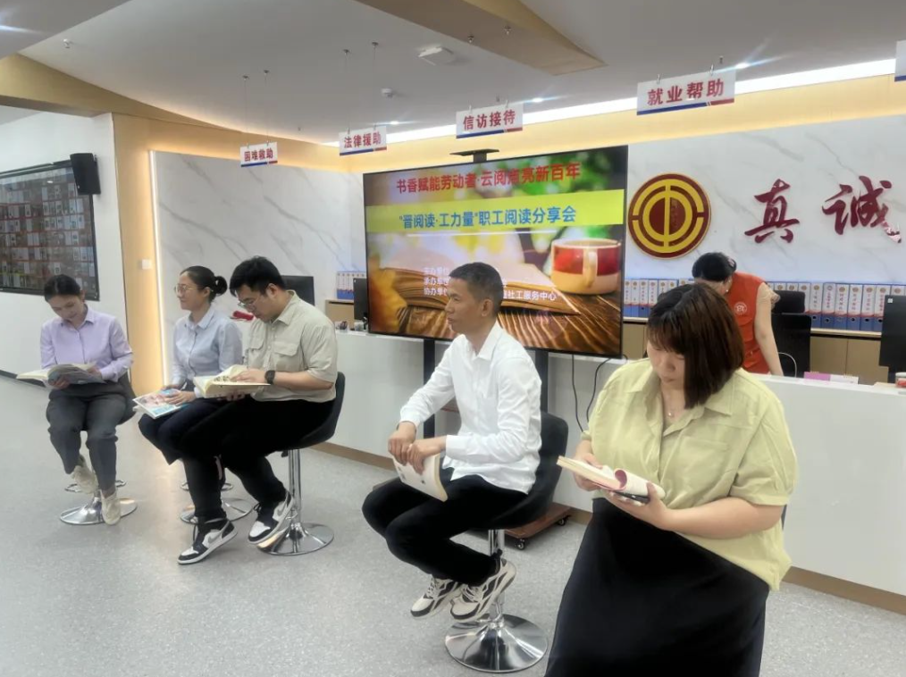 阅读分享会通过名家书籍分享、职工好书分享、数字云书馆培训等环节,让职工同沐书香,在字里行间触摸文明脉络,让文化薪火照亮奋进征程。现场书香四溢、气氛热烈。江建公司6名职工及社区内其他企事业单位职工以书为引,将书中内容与个人感悟巧妙融合,畅谈读书感悟,传递精神力量。