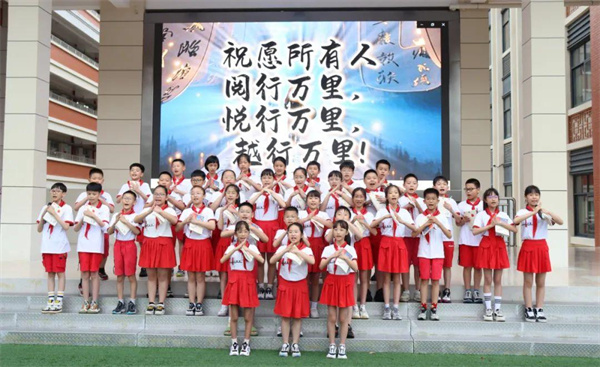 五年8班的同学们伴着书页翻卷、山水流淌的画面,用《阅行千里》展现阅读如一场永不止步的旅途。