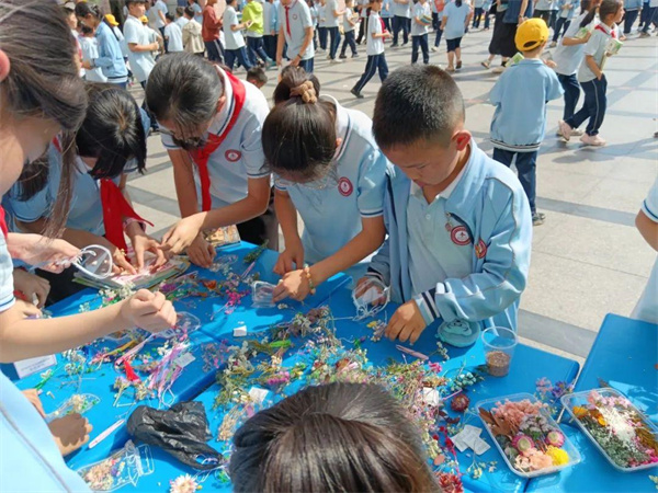 游园会上,孩子们捐赠2-4元爱心善款,就能抽取“希望种子盲盒”、制作干花书签。