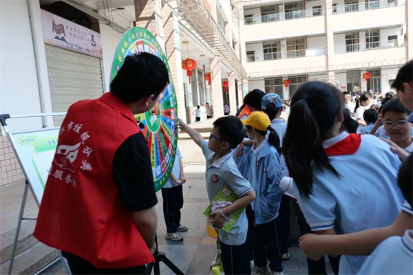 政策宣讲环节以垃圾分类知识竞答形式开展,孩子们踊跃参与,在趣味中学习环保知识。
