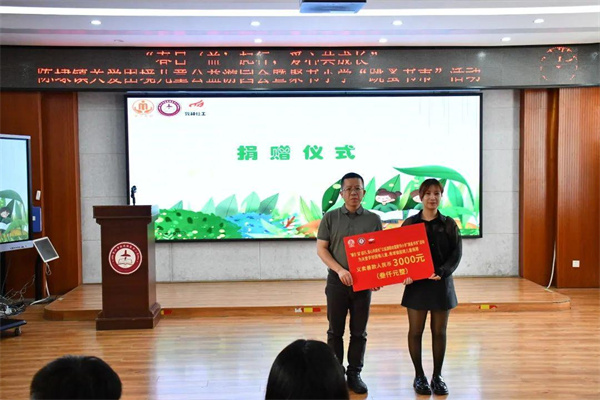 晋江市民政局党组成员庄铭德向陈埭镇福蕾儿童及学校困难学生捐赠义卖善款,由爱心家长志愿者代领。