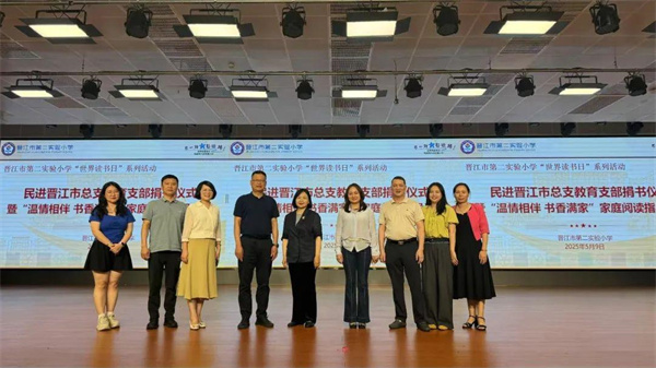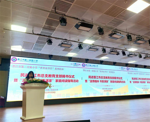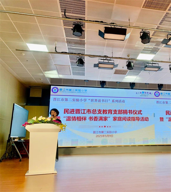 五月的风轻拂琼霞楼,携来阵阵书香。5月9日晚,晋江市第二实验小学主校区致远厅内灯火葳蕤,一场以“书”为名的美好之约在此悄然启幕,“世界读书日”系列活动——民进晋江市总支教育支部捐书仪式暨“温情相伴,书香满家”亲子阅读讲座在此举行,校家社三方相聚,共赴一场关于阅读与成长的心灵之约。民进晋江总支周莹主委及教育支部教师会员代表莅临现场参加活动。