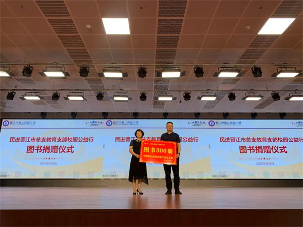 随后,民进晋江总支副主委、季延中学蔡明指副校长代表教育支部为学校捐赠300册图书。这些带着温度的图书,将加入“和鸣书苑”,化作孩子们眼中的星辰、心中的远方,让知识的种子在更多孩子心中生根发芽。