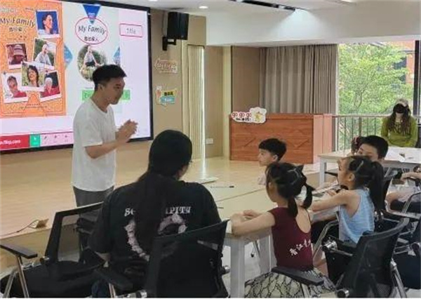活动以“My family-我的家人”为主题,主讲Millerl老师通过生动的英语绘本故事,带领孩子们认识家庭成员词汇,课堂氛围活跃,孩子通过“家庭树”绘画、轻松掌握“father”“sister”等家庭成员词汇与日常表达,结合生活场景设计互动游戏,让孩子在角色扮演中练习英语表达。