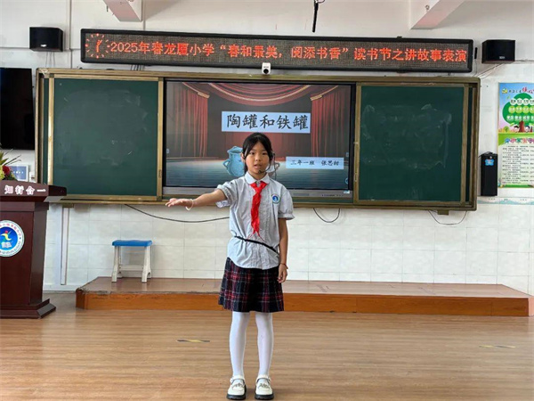 4月23日,低年级萌娃化身故事小达人,用奶声奶气却充满感染力的声音,将《小壁虎借尾巴》《陶罐和铁罐》等经典故事演绎得活灵活现,引得台下掌声如潮。