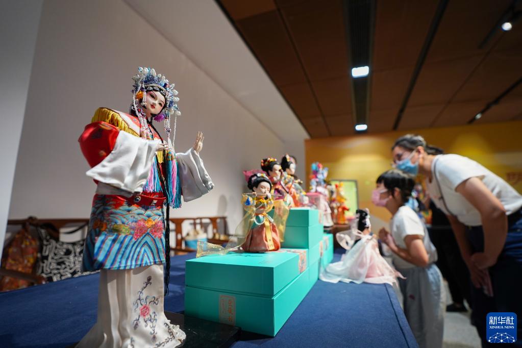 观众在中国工艺美术馆观看北京绢人工艺品(2022年9月10日摄)。新华社记者 陈钟昊 摄