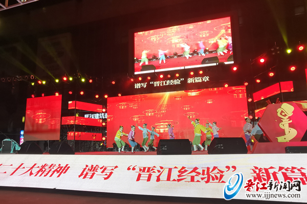 当晚的文艺演出以“学习贯彻党的二十大精神 谱写‘晋江经验’新篇章”为主题,来自磁灶各单位、文艺团体自导自演的节目相继登台,借助舞台演出宣传党的二十大精神。