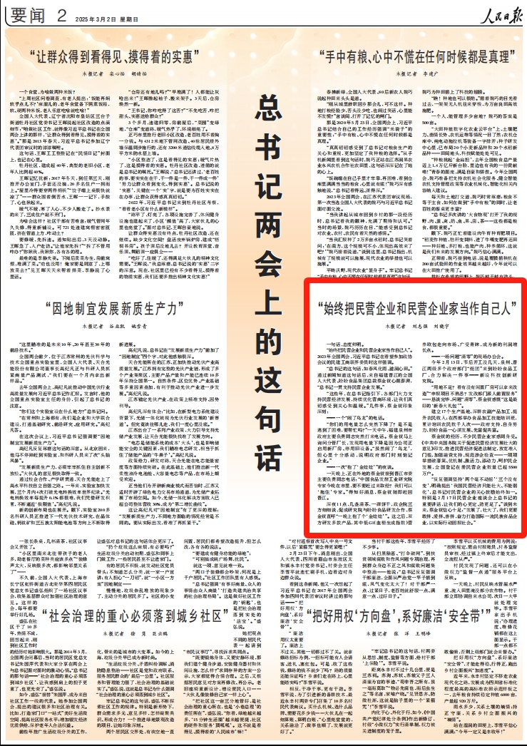“始终把民营企业和民营企业家当作自己人”。2023年全国两会,习近平总书记在看望参加政协会议的民建工商联界委员时这样强调。