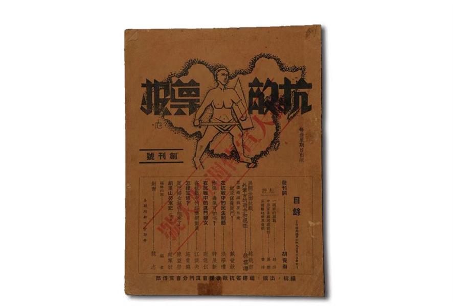 国家一级文物,1937年福建省抗敌后援会厦门分会出版《抗敌导报》创刊号(图片来源:福建博物院)
