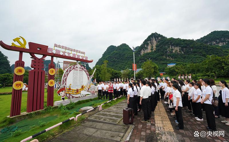 2024年7月1日,在广西融水苗族自治县民族文化廉政公园,预备党员接受廉政教育。