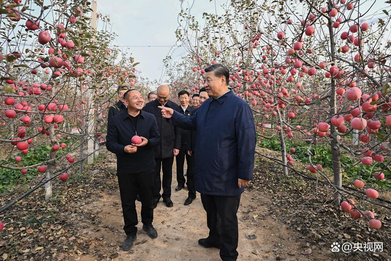 2022年10月26日,党的二十大闭幕不到一周,总书记的身影就出现在陕西省延安市安塞区高桥镇南沟村的苹果园里。