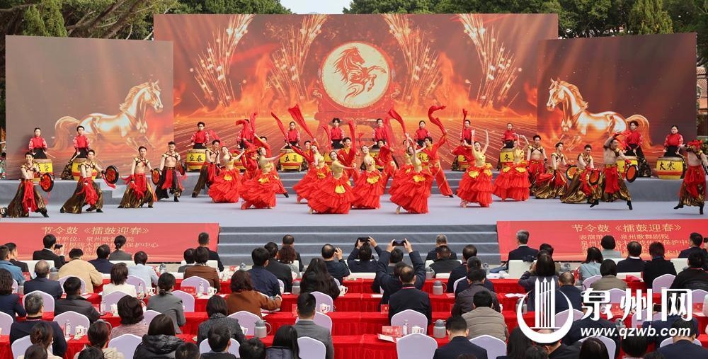 1月29日,2026年全国春节文化和旅游消费月主场活动在泉州府文庙广场启动。现场,节令鼓《擂鼓迎春》、南音《百鸟归巢》、戏曲《八闽戏韵庆团圆》、歌伴舞《春天的芭蕾》、音乐短剧《美丽中国行》等节目轮番上演,掌声阵阵、欢声不断,年味浓郁、热闹非凡。(融媒体记者陈起拓 叶虹羽 摄)