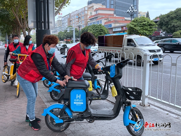 在阳光时代广场附近,志愿者们穿梭于街道,将违规停放的共享单车、电动车搬到非机动车停放区域,并做到车头朝向一致,停放整齐。“希望广大市民从自身做起,从小事做起,养成良好习惯,向不文明行为说‘不’,为文明城市创建添砖加瓦。”晋江市晋爱志愿服务队副队长吴清江在现场呼吁。