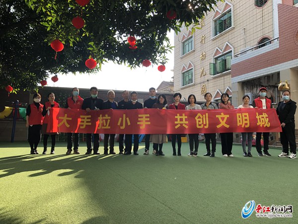 “两个朋友手碰手,你背背我,我背背你,来了一只小螃蟹,举起两只大钳子,我跟它点点头,它跟我握握手。来,小朋友们跟着医生阿姨边念儿歌边做动作,看谁的小手洗得最干净……”29日下午,由晋江市妇幼保健院党支部主办的“大手拉小手共创文明城”主题党日活动走进青阳街道霞行幼儿园,来自晋江市妇幼保健院的党员志愿者们,用生动的视频、儿歌,给孩子们讲解洗手方法。
