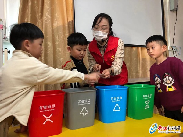 霞行幼儿园大班段200多名孩子在老师的组织下参加了此次活动。活动中,党员志愿者们通过两个有趣的短视频,给孩子们讲解了为什么要节约粮食,在日常生活中我们要怎么做,并教孩子们朗诵古诗《锄禾》。为培养小朋友们保护环境、美化家园的意识,增强垃圾分类的自觉性,党员志愿者们带来了垃圾分类道具,现场教孩子们辨别什么是厨余垃圾、可回收垃圾、不可回收垃圾和有害垃圾,在讲解过后,孩子们通过手中的卡片,依次上台开展小游戏,正确将手中的“垃圾”投入对应的垃圾桶的小朋友,还获得了“环保小卫士”的称号。