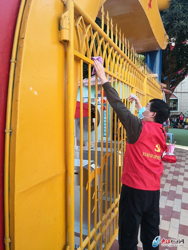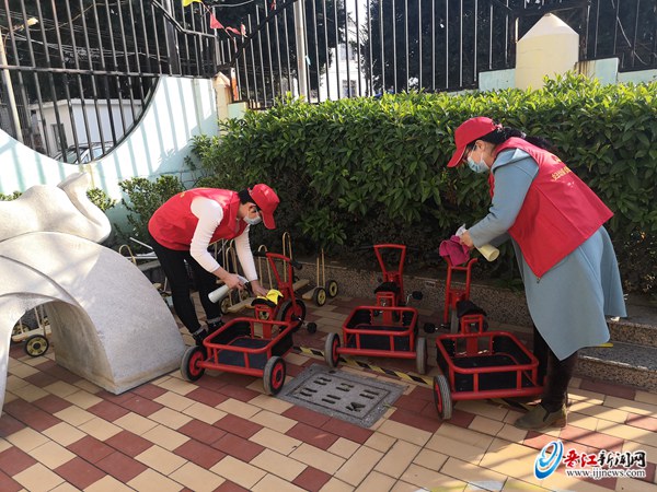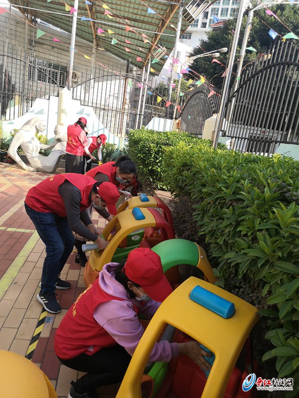 当天下午,晋江市妇幼保健院的党员志愿者们还对幼儿园的游乐设施进行了擦洗、消毒。