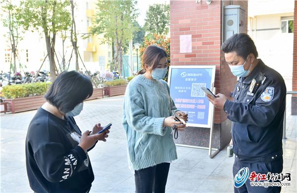 现在梅岭综合市场门口设有监测点,对市民进行扫码测温。