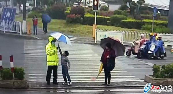 事件回顾:小男孩劝阻奶奶闯红灯 受表扬后为交警撑伞