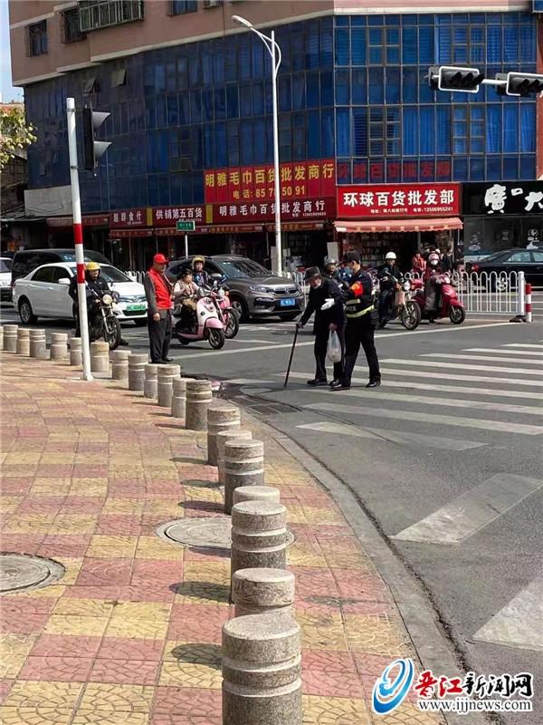 晋江新闻网3月11日讯 “不急,您慢慢走,我扶您!”昨日下午,在晋江安海镇优越广场的十字路口,一场暖心的搀扶“接力”温暖了不少人(见上图)。