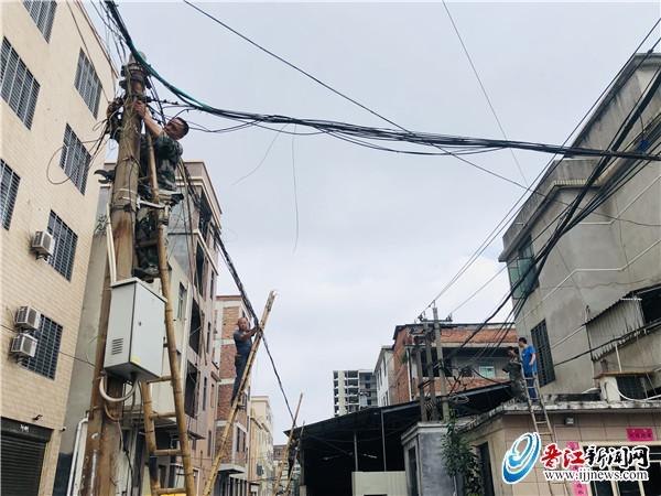 据了解,自8日起,西滨镇全面启动架空缆线整治专项行动,按照“可下地则要下地、应清除要尽清除、能共杆则要共杆、应规整要尽量规整”的原则,对跃进、思进、海滨三个村(社区)的驾空缆线进行整治。
