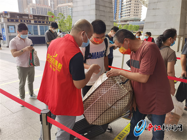 记者在晋江火车站看到,站内外随处可见“志愿红”的身影,涌动着一股股文明的暖流。现场,志愿者们有条不紊地为进站旅客提供交通引导、扫描健康码服务,并帮助“老弱病残孕”乘客提行李,让乘客安全、及时乘车。同时,他们还在站前广场捡烟头、扫落叶、除杂草,并进行文明劝导与宣传。