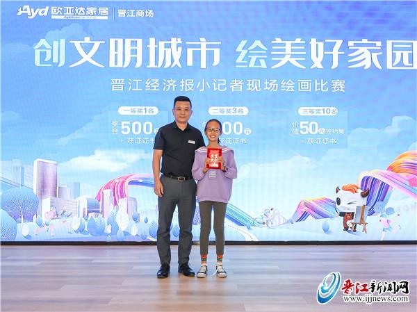 晋江新闻网11月10日讯 每个人心中,都有一个理想的家园。对小记者来说,他们心中的美好家园又是什么模样的呢?为营造美好和谐的城市氛围,培养小记者的绘画能力及丰富的想象力、创造力,联合欧亚达家居广场举行小记者现场绘画比赛。两个半小时的比赛时间里,48名小记者围绕“创文明城市 绘美好家园”这一主题展开绘画创作,将各自对家园的美好记忆和美好想象描绘在画纸上。最终,来自晋江灵源灵水中心小学的小记者徐子悠脱颖而出,斩获大赛唯一一个一等奖。