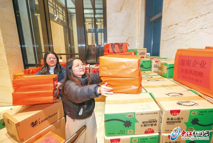 迦南企业许恩典捐赠的浴巾三件套、福建震龙鞋业有限公司张振限捐赠的拖鞋,还有晋江青商会其他会员企业捐赠的袜子、月饼、果汁、洗衣凝珠……背后都承载着大家的满满暖意。后续,这些物资将被分发到快递员、外卖员、网约车司机、环卫工等城市一线劳动者和困境青少年家庭、特殊家庭等群体手中,为他们送去冬日的温暖与关怀。