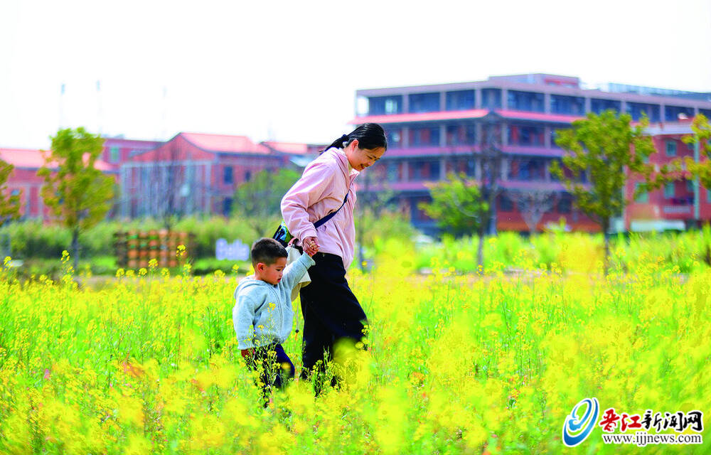 近日,晋江九十九溪田园风光区85亩油菜花悄然绽放,为绿色田园铺上金色花毯。漫步九十九溪畔,金色花浪随风翻涌,与远处独具闽南特色的红厝顶相映成趣。田埂间游人往来不绝,或漫步、或赏花、或拍照留念,处处洋溢着春日的生机与活力。