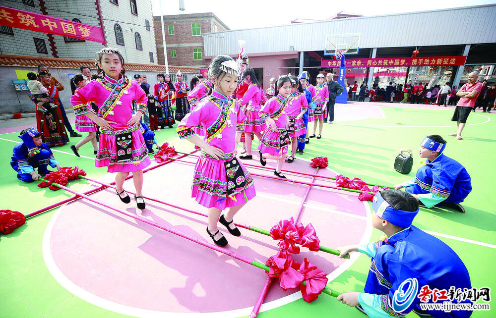 “嗒嗒,嗒;嗒嗒,嗒……”畲乡儿女在竹竿碰撞的一开一合中雀跃。这一天是晋江唯一的畲族村——内坑镇霞美村,举办一年一度“三月三”民俗活动的日子。
