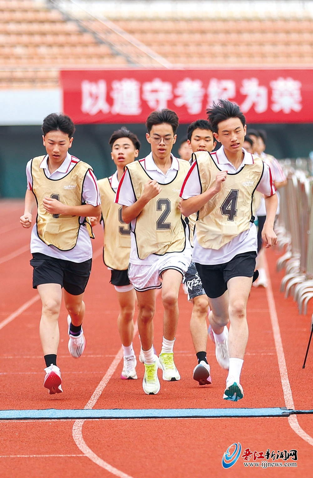 昨日,记者来到晋江市体育中心,正值晋江二中考生在考试。考生在考官的引导下,前往考试区域进行检录、候场、考试。