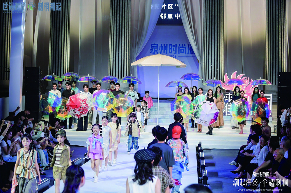 这场走秀盛典是“潮起海丝·伞耀刺桐”2026年泉州古城×晋江晴雨伞时尚融合创新季的重头戏。活动主办方介绍,此次集中亮相的新品在设计上大胆突破,将泉州世遗元素、刺桐花、闽南红砖等文化符号与伞面工艺、结构创新相结合,实现了功能性产品向文创消费品的跃升。王翔鹏说:“这不是一次简单的产品展示,而是晋江伞业从‘制造’迈向‘创造’、从‘产品’升级为‘潮品’的宣言。”