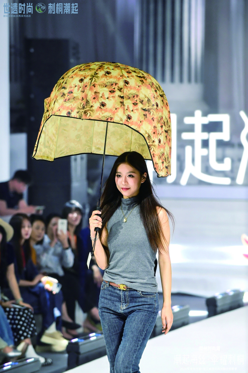 当晚,侨光电影院门前T型舞台上,模特们手持设计精巧、风格各异的晋江晴雨伞款款而行。这些伞具不再是单纯的遮阳挡雨工具,而是融入海丝文化、闽南元素和现代时尚语境的匠心之作。“当晋江晴雨伞遇上泉州古城,当传统产业邂逅文旅热潮,我们找到了产业升级的新路径——推动文旅与传统优势产业深度融合,让每一把晋江伞成为承载海丝文化、彰显刺桐魅力的载体,成为代表泉州、代表晋江的城市符号。”晋江市伞业行业协会会长王翔鹏表示。