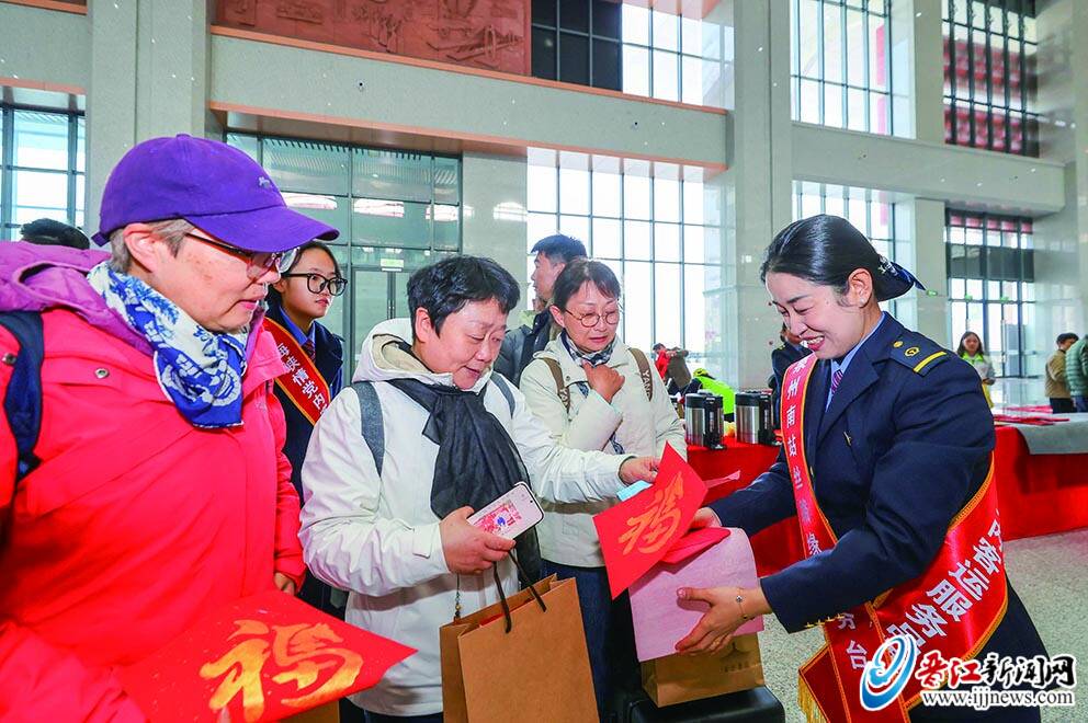 昨日是春运首日,福厦高铁泉州南站工作人员为回乡旅客送上新春祝福。