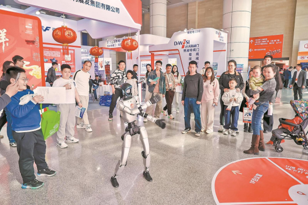 新春元素与科技趣味点亮展会现场,刚刚亮相春晚的宇树科技机器人灵动表演、智能机器狗展示高难度动作,科技互动体验区前围满了观展人群;“马上小成功”IP萌趣亮相,与南安市春节文旅主题活动呼应,年味、文旅味、产业味相得益彰;“南安优品”特色展区陈列着本土农特产品,让八方客商在洽谈商机之余,感受南安地道风物。