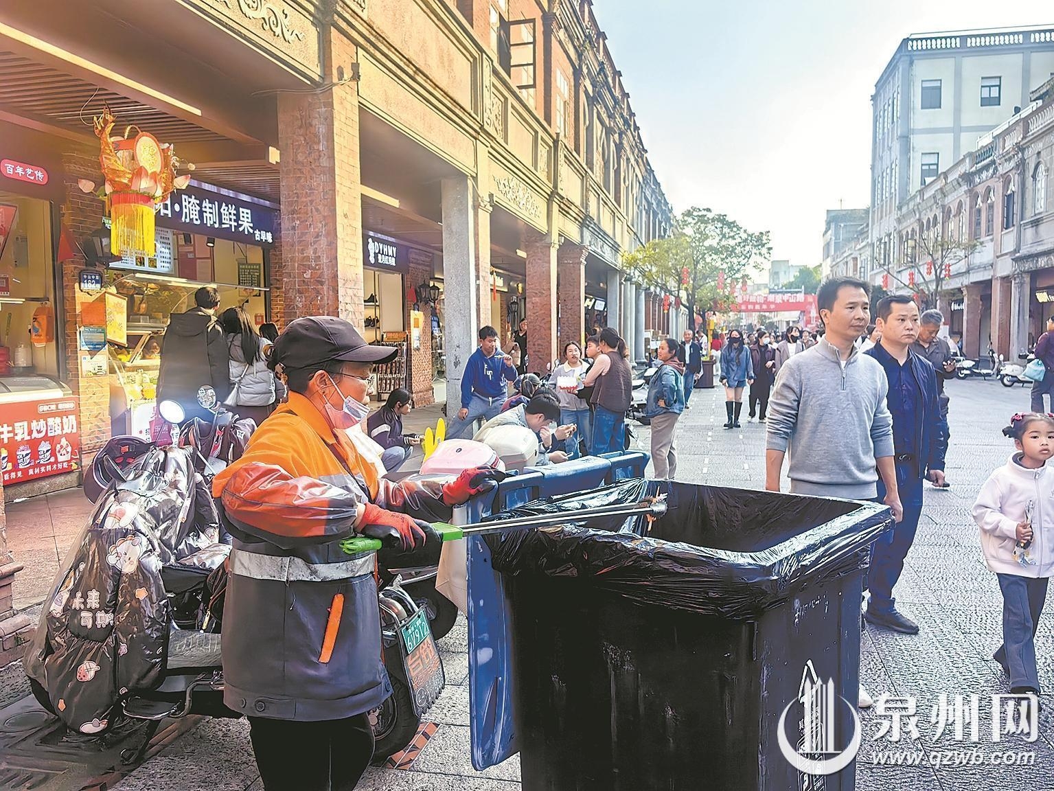 “游客多了,垃圾量自然跟着上涨。”他告诉记者,平时一天最多清理十多次垃圾桶,到了春节假期要增加到二三十次,经常刚把垃圾桶推走倒空,转身不到十分钟又满了,他们只能一趟接一趟来回打扫、清运。“春节这几天确实辛苦,但看到游客逛得舒心,便觉得还能坚持。”