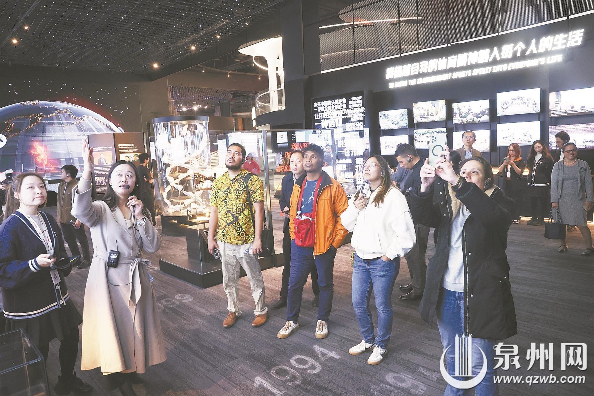 昨日,由中国国际新闻交流中心组织的亚太、拉美、阿拉伯地区十国媒体代表团抵达泉州,开启为期两天的访问行程。当日下午,代表团走进晋江经验馆与安踏集团总部,通过实地参观、互动交流,深度感悟“晋江经验”的实践力量,探寻泉州从“爱拼才会赢”的拼搏精神到“智”造升级的发展路径,解锁民营经济创新发展密码。